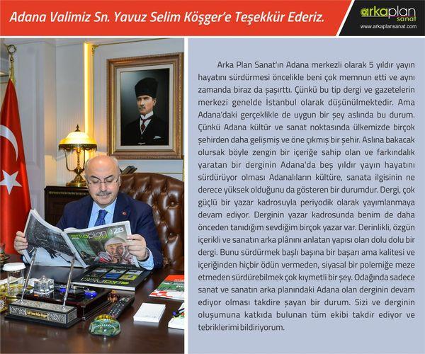 Adana Valimiz Sn. Yavuz Selim Köşger’e Arka Plan Sanat Dergimiz İle İlgili Düşünceleri İçin Teşekkür Ederiz…