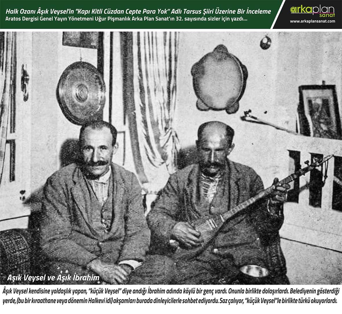 Aşık Veysel’in kendisine yoldaşlık yapan, “Küçük Veysel” diye andığı İbrahim adında bir köylü genç vardı. Onunla birlikte dolaşırlardı. Belediyenin gösterdiği yerde (Bu bir kıraathane veya donemin halkevleriydi) akşamları dinleyicilerle burada sohbet ediyordu. Saz çalıyor küçük Veysel ile birlikte türkü okuyorlardı.