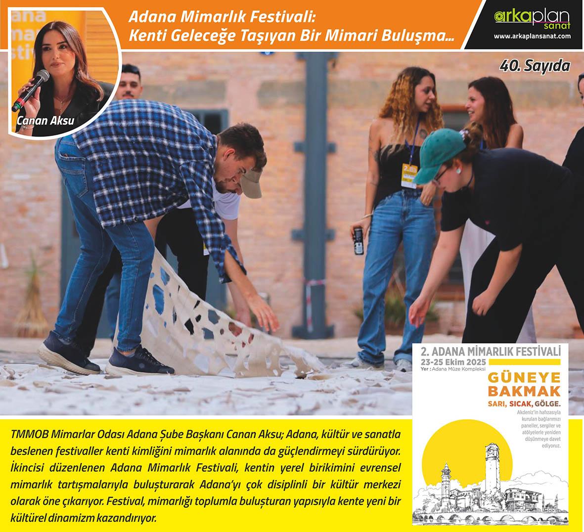 Bu yıl “Güneye Bakmak” temasıyla düzenlenen festival; Adana’nın iklimi, ışığı, gölgesi ve yerel belleğini mimari düşüncenin merkezine alarak yerelden evrensele uzanan bir tartışma zemini sundu. Paneller, atölyeler, sergiler, konferanslar ve saha üretimleriyle zenginleşen program; mimarlığın yalnızca teknik bir alan değil, insan odaklı ve çevreyle uyumlu bir yaşam kültürü olduğuna dikkat çekti. Adana Mimarlık Festivali, bu yönüyle kentin kültürel hareketliliğini besleyen ve Adana’yı festivaller kenti olarak ileriye taşıyan önemli bir yapıtaşı olmayı sürdürüyor.