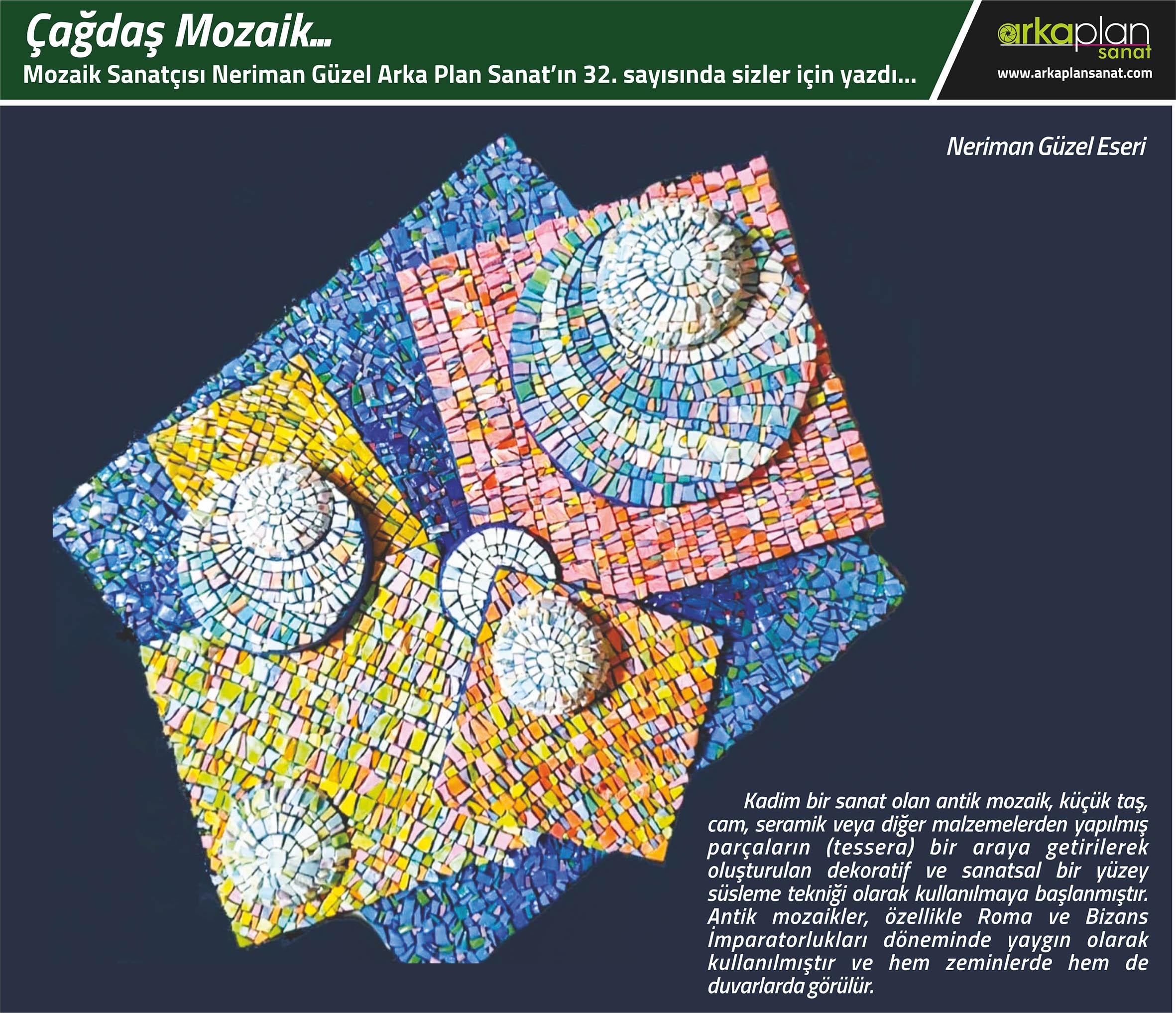 Kadim bir sanat olan antik mozaik, küçük taş, cam, seramik veya diğer malzemelerden yapılmış parçaların (tessera) bir araya getirilerek oluşturulan dekoratif ve sanatsal bir yüzey süsleme tekniği olarak kullanılmaya başlanmıştır.