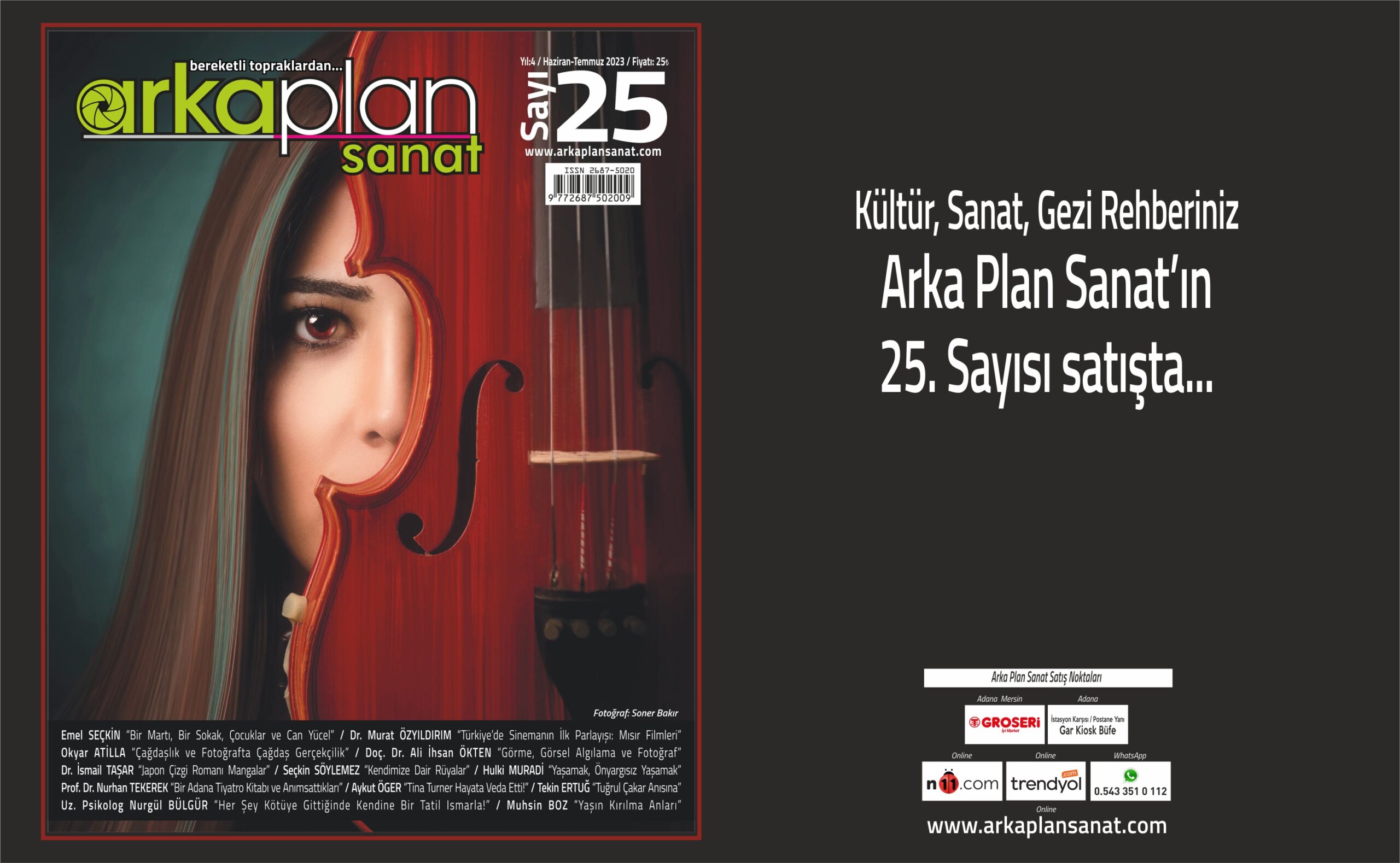 📌 Kültür, Sanat, Gezi Rehberiniz Arka Plan Sanat’ın 25. Sayısı Resim, Edebiyat, Arkeoloji, Sinema, Fotoğraf, Tiyatro, Müzik, Gezi, Sosyoloji, Tarih ve daha birçok içerikle satışta….Kapak: Soner Bakır.Arka Plan Sanat’ın 25.