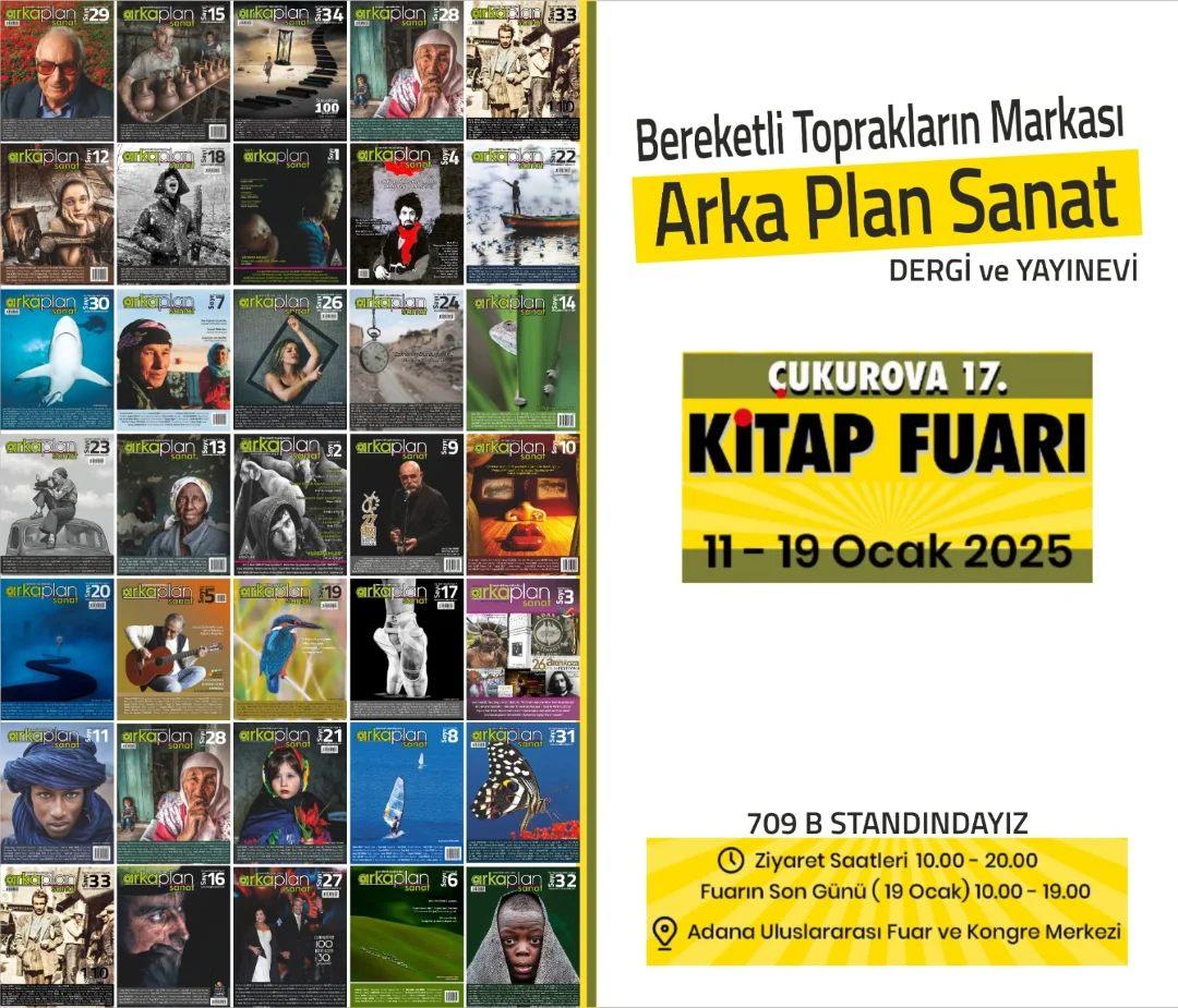 📌 Arka Plan Sanat Dergisi ve Yayınevi olarak “Çukurova 17. Kitap Fuarındayız”….Tarih: 11 – 19 Ocak 2025.📍Adana Uluslararası Fuar ve Kongre Merkezi / 709B