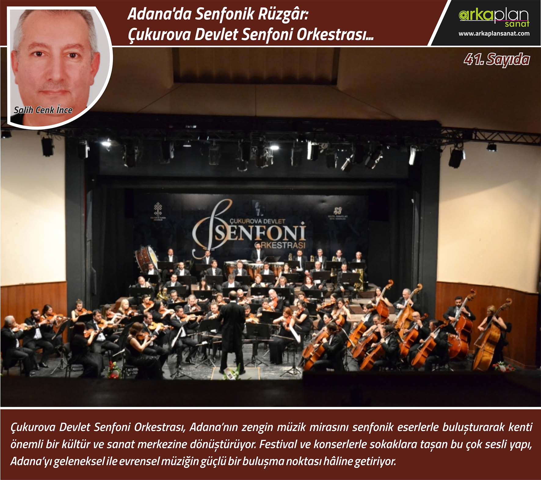 Çukurova Devlet Senfoni Orkestrası (ÇDSO), 1988’den bu yana Adana’nın kültürel hayatında önemli bir rol üstlenerek her hafta düzenlediği konserlerle klasik müziği sanatseverlerle buluşturmaktadır. Adana’nın zengin müzik mirası; Dadaloğlu ve Karacaoğlan’ın