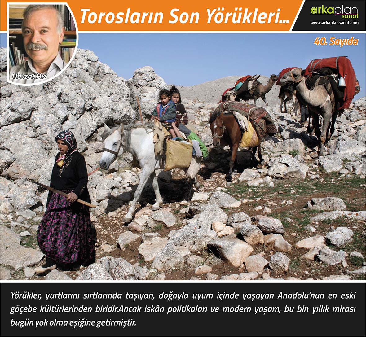 TOROSLARIN SON YÖRÜKLERİ 🎉Kültür, sanat ve gezi rehberiniz Arka Plan Sanat’ın 40. sayısı, Nevzat Hız’ın “Torosların Son Yörükleri” kapak fotoğrafıyla yayımlandı… Bu Sayıda;Emel Seçkin / Bir Aşk Vardı Şiirde Bir