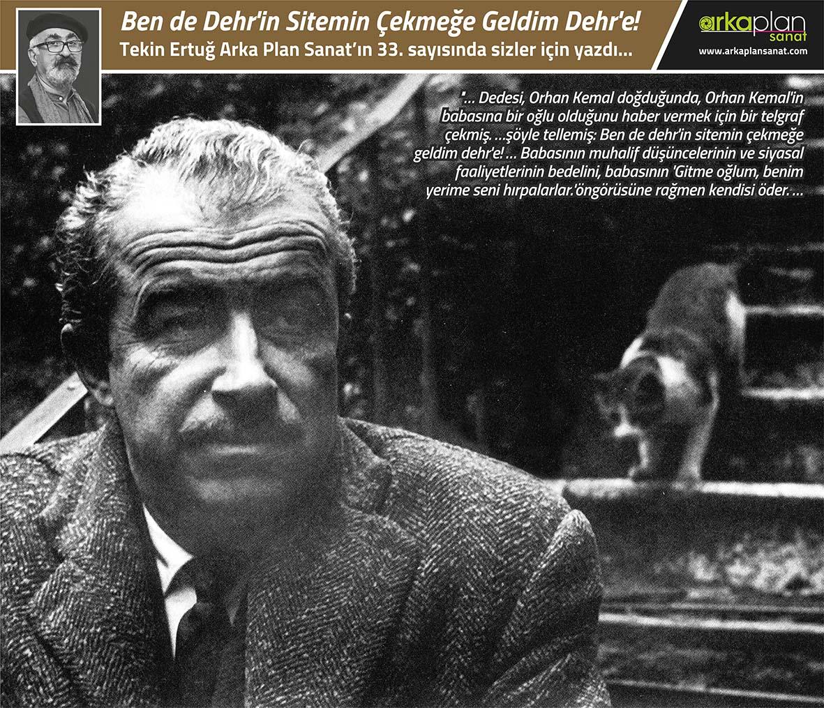 “ … Dedesi, Orhan Kemal doğduğunda, Orhan Kemal’in babasına bir oğlu olduğunu haber vermek için bir telgraf çekmiş. …şöyle tellemiş: Ben de dehr’in sitemin çekmeğe geldim dehr’e! … Babasının muhalif